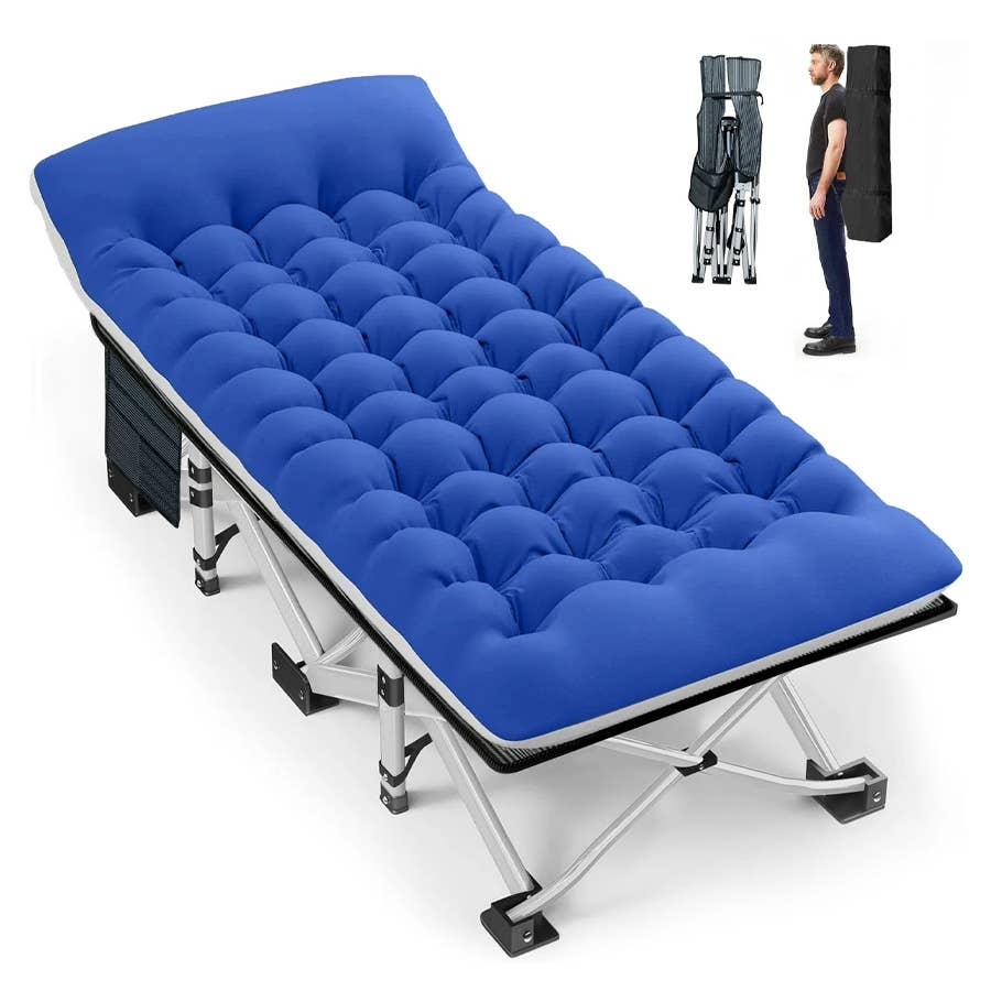 “I recently used the camping cot on a weekend trip, and it exceeded my expectations for comfort,” one reviewer wrote. “It has a soft side for lounging and a firm side for sleeping, and it felt very comfortable without an extra sleeping pad.”