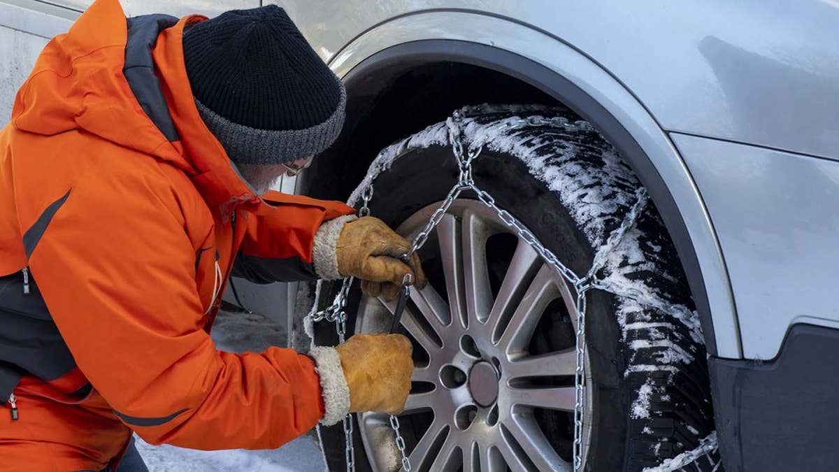 Chains are required above 4,000 to 5,000 feet during active controls. AWD is not exempt from R-3 restrictions. The statewide 511 line carries live chain-control status for California; Nevada drivers can dial 511 in state. Carry chains even if it looks clear at departure. Conditions shift fast on the passes.