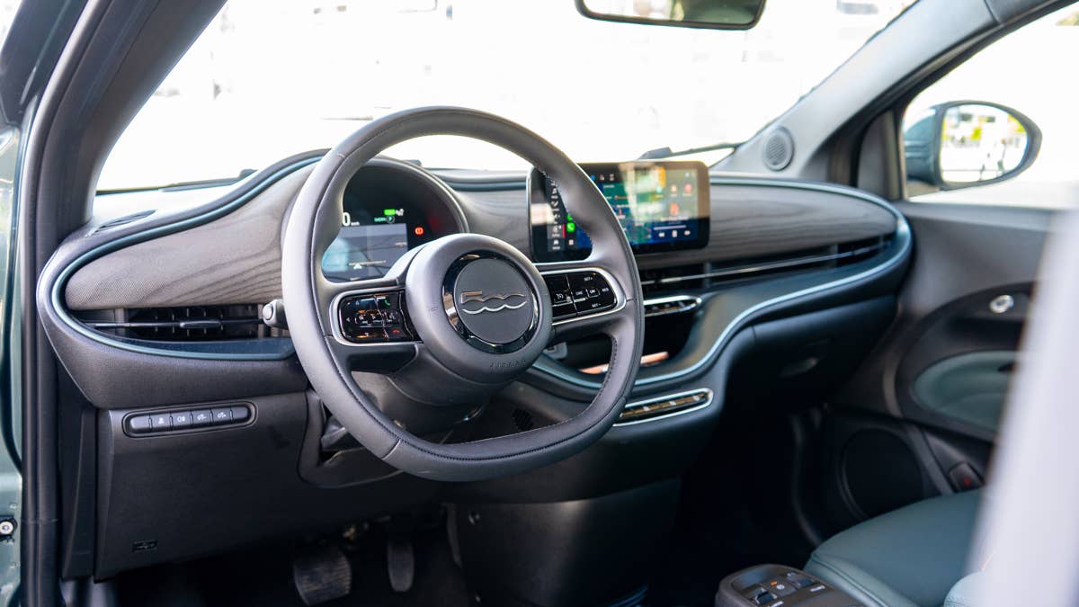 The short wheelbase makes it a delight through roundabouts, tight side streets, and winding urban roads. Steering is light but accurate, body control is respectable, and the whole experience feels like it’s urging you to play with it like a toy, rather than as a mere mode of transportation. Over potholes and poorly maintained asphalt, it can get bouncy, but it’s never punishing. On Highway 99, the Fiat proved more competent than skeptics might expect. Road and wind noise exist, of course, but not enough to complain about, given the mission. It never felt dangerously out of breath or unsettled at speed. No, this is not some grand Italian grand tourer—it’d feel far more at home darting through Tuscan hilltop villages in the sun than eating up miles on motorways.