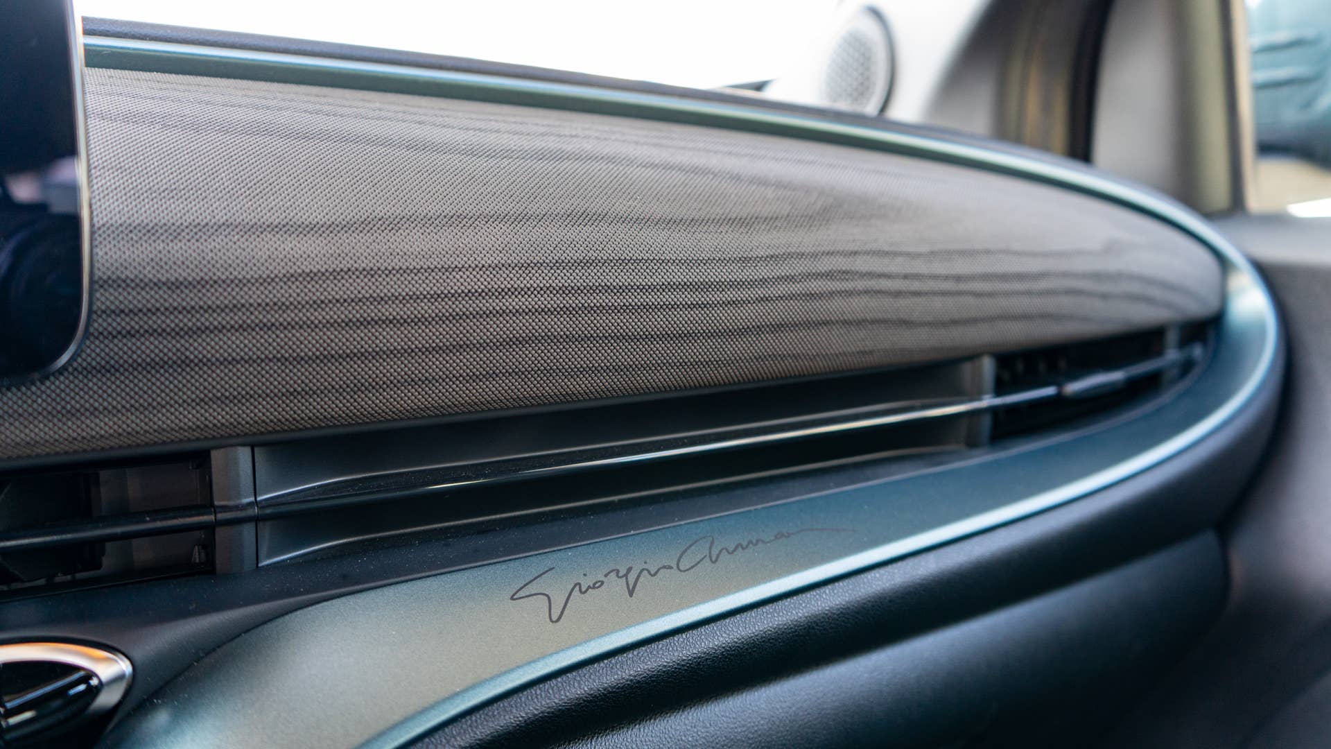This Giorgio Armani Edition builds on that with subtle upgrades that elevate the experience to a surprisingly charming degree: unique 17-inch wheels featuring Armani motifs, special badging, dark chrome accents, painted bumpers, and richer finishes throughout. The wheels, especially, give the little Fiat added presence. They are also, by far, the most unserious design element on the entire car, and so although I was skeptical of them at first, I absolutely loved what they did for the overall look by the time I had to turn the keys back in. Finished in Green Metallic—although, to my eyes, it’s far more blue than green—my tester looked lavish, stylish, and unmistakably Italian. Parked beneath Vancouver overpasses or gliding through Kitsilano streets, it felt like a fashion accessory as much as an automobile.